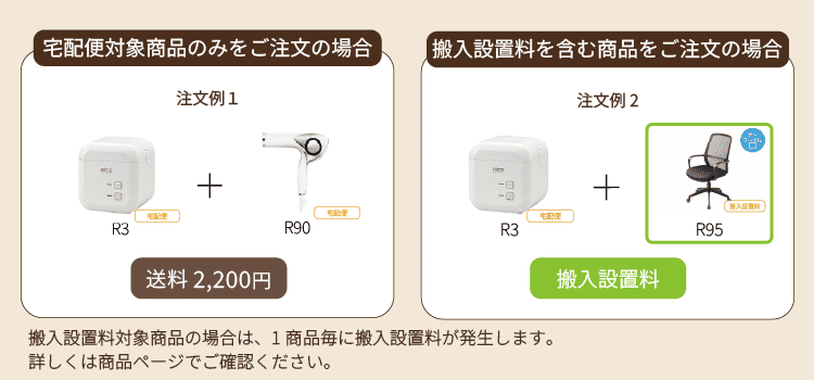 HPに「搬入設置料」と書かれた商品をレンタルされた場合は、お部屋に置いたままご退去ください。